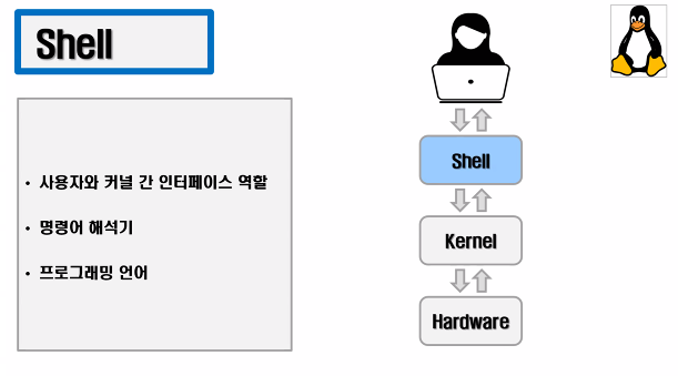 - 깜빡이는 커서가 shell, 요청에 대한 응답을 kernel이 수행함