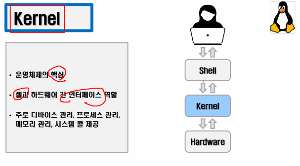 1️⃣ Kernel(커널) 2️⃣ Shell(셸) 3️⃣ FileSystem(파일시스템)